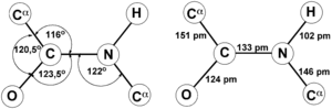 - Los cuatro átomos del enlace (CO-NH) se hallan en un mismo plano, con el Oxígeno y el Hidrógeno en posición trans.