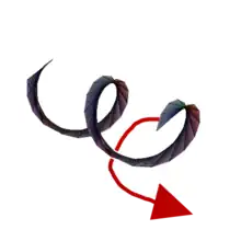- Animación del truco del cinturón de Dirac con dos cinturones unidos a un objeto (cuadrado), que muestra el entrelazamiento de orientación después de un giro el desenredado después de dos giros. La animación también muestra que los objetos con cinturón se comportan como partículas de 1/2 giro.