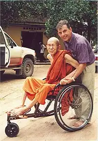 Se le conoce como el Obispo de las sillas de ruedas por su labor humanitaria en Camboya.