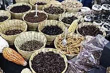 Según la fuente que se consulte, a la fecha se han contabilizado entre 549 especies[10][11] y 550 especies[12][13] de insectos comestibles en el país (entre una tercera y cuarta parte de las especies de insectos registradas como comestibles del mundo) lo que lo convierte a México en el país del mundo en el que se ha documentado mayor variedad de especies de insectos comestibles consumidos y registrados.[14][15][16][17]