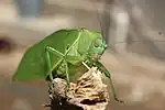 - Cigarras, chicharras, coyuyos, coyoyos, chiquilichis, tococos, cocoras, cocorrínes, cogollos, ñes, ñakyrã o totorrones, son insectos de la familia Cicadidae, que pueden vivir tanto en climas templados como tropicales. Las ninfas viven enterradas mientras que los adultos viven sobre vegetales. Se consumen en estado adulto las especies de los géneros Cicada, principalmente: (Tibicen) pruinosus (Say, 1825)[40]; Odopoea, principalmente: montezuma (Distant, 1881), su sinónimo es Daza montezuma (Walker, 1850)[41]; Proarna (Cacama), principalmente: maura (Distant, 1881) y Quesada (Tympanotermes), principalmente: gigas (Olivier, 1790) conocida comúnmente como cigarra común.[37]