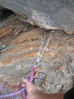En la práctica de la escalada se utiliza una amplia diversidad de equipos de escalada,[1] que incluye accesorios que permiten la progresión del escalador así como su protección contra las consecuencias de una caída.[2]
