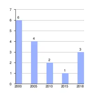 | Gráfica de evolución demográfica de Erbellas[2] entre 2000 y 2018 |