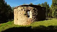 El edificio conserva un ábside y restos de un muro, construidos en cal y canto, donde aparecen algunos sillares y una bóveda de ladrillo. Carece actualmente de tejas o cubrición, quedando visible el material de relleno usado en las bóvedas.