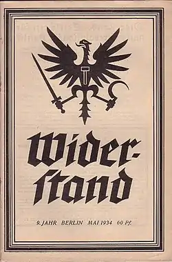 Niekisch dirigió la revista Widerstand (Resistencia), donde expresó sus ideas nacionalistas, prusianistas, antidemocraticas y furibundamente antisemitas entremezclados con un socialismo revolucionario, agrarista y radical. Durante el régimen nazi, mostró abierta oposición hacia Hitler, al que no concebía como un auténtico revolucionario si no como una farsa apoyada por el gran capital alemán y extranjero. Estas críticas al régimen le valieron ser detenido en 1937 y condenado a cadena perpetua en 1939. Tras la guerra fue puesto en libertad y vivió en Alemania Oriental, donde continúo ejerciendo como escritor y periodista. Su actitud crítica hacia este nuevo régimen comunista le obligó a exiliarse del país en 1955. Niekisch finalmente se asentó en Berlín Occidental en 1963 y falleció en 1967.