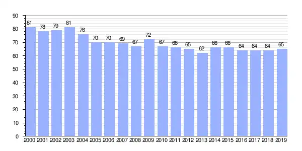 | Gráfica de evolución demográfica de Erviñou (parroquia) entre 2000 y 2019 |
