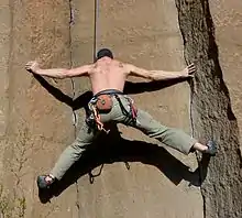 Cuando la fisura es muy ancha para que una sola extremidad quede atascada, los escaladores utilizan una técnica conocida como "stacking": ambas manos o ambos pies son colocados dentro de la fisura, haciendo presión una con la otra. Por ejemplo, si la fisura es muy ancha para un empotramiento de puño, el escalador puede presionar el puño contra una pared y la otra mano abierta contra la otra pared para expandir el tamaño de la fisura. La técnica "stemming", usada en fisuras que son más grandes que el cuerpo del escalador, emplean un principio muy similar. Las cuatro extremidades hacen presión contra la roca, ejerciendo fuerzas opuestas; Las extremidades se mueven una a la vez, mientras se hace contacto con las otras tres.