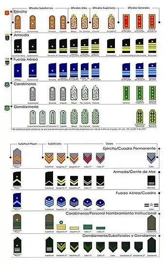 - Distintivos de grado de los oficiales del Ejército de Chile