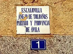 Placa mostrando la pertenencia de Escalonilla a Tolbaños.
