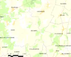 Escamps es una localidad y comuna francesa situada en la región de Borgoña, departamento de Yonne, en el distrito de Auxerre y cantón de Coulanges-la-Vineuse.