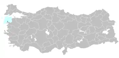 Localización aproximada de Escepsis (punto azul) en la provincia de Çanakkale (zona sombreada en azul pálido), Turquía.[1]