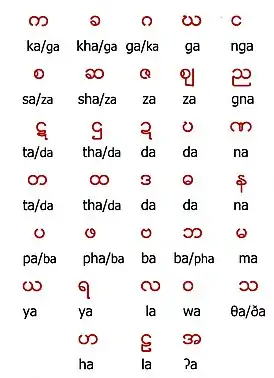 | Alfabeto birmano | ||