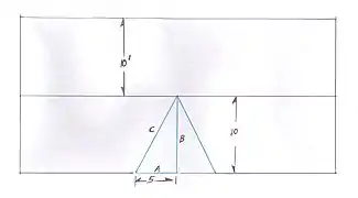 - Longitud real de limatesa o de limahoya por pie en planta de la viga común. La viga de limatesa o limahoya también conecta la cumbrera a una pared, pero se encuentra en un ángulo de 45 grados con la viga común. Este número da la longitud de la viga de limatesa o limahoya por cada diecisiete pulgadas de recorrido horizontal de la limatesa o limahoya (17 porque , siendo la medida de la hipotenusa de un triángulo rectángulo con ángulos de 45 grados cuyos catetos miden 1). Esto implica utilizar la medida en planta de la viga común, pero evita la necesidad de medir la limatesa o limahoya en planta.