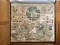 Cada mueble contiene un rollo continuo de tres mapas encolados a una tela que hace de soporte secundario y cosidos. Los muebles guardaban los mapas y servían para presentarlos. Un sistema permitía mostrar uno de los tres mapas según la materia a estudiar. Una barra de madera fija en la parte superior tensaba los mapas, enrollándose o desenrollándose sobre otras dos barras - dispuestas en la zona inferior- al hacerlas girar con una manivela. Cada rollo contiene un mapa de España y Portugal, otro de Europa y una cartografía celeste y mapamundi, con imágenes del sistema solar o planetario, fases de la luna, teoría de los eclipses, las estaciones del año o un bosquejo geológico de la capa terrestre.[2][4]