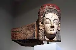 Antefija en forma de cabeza de Attis, terracota, Fiesole.