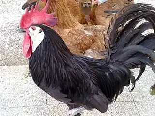La española cara blanca es una raza autóctona de gallina española, considerada como una de las razas más antiguas criadas en la zona mediterránea. Es el resultado de la selección de ejemplares de la gallina castellana negra (la más antigua de la península ibérica, y una de las primeras de Europa),[1] desde la que los criadores consiguieron una larga y pendiente cara blanca, libre de arrugas.