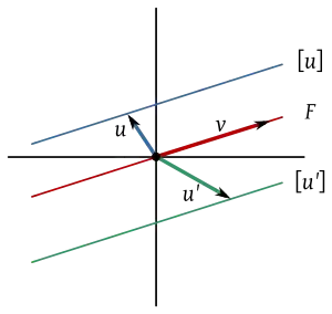 - , siendo su espacio cociente , es decir todas las rectas paralelas al subespacio F.