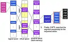 Otra característica común de los espacios de direcciones son las asignaciones y las traducciones, que a menudo forman numerosas capas. Esto generalmente significa que algunas direcciones de nivel superior deben ser traducidas a las de nivel inferior de alguna manera. Por ejemplo, el sistema de archivos en un disco lógico opera números de sectores lineales, que deben traducirse a direcciones absolutas del sector de direccionamiento de bloque lógico, en casos simples, mediante la adición de la primera dirección sectorial de la partición. Luego, para una unidad de disco conectada a través de ATA Paralelo, cada uno de ellos debe convertirse en una dirección lógica (significa falso) del Cilindro-Cabezal-Sector debido a las deficiencias históricas de la interfaz. Se convierte de nuevo a LBA por el controlador de periférico de disco y, finalmente, a los cilindros físicos, cabeza y números de sector.