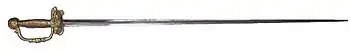 Su longitud máxima es de 110 cm, su peso máximo es de 770 g. Es el arma más pesada de las empleadas en esgrima. Su hoja es de acero templado flexible, de sección triangular y sin bordes cortantes.
