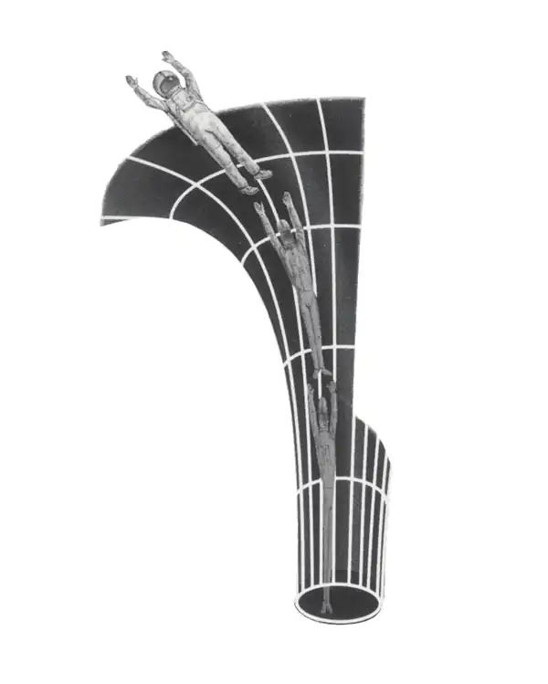 Representación de la NASA del proceso de espaguetización mediante un astronauta cayendo en un agujero negro.