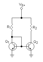 Como VBE1 = VBE2 y Q1 y Q2 son idénticos, IB1 = IB2. La corriente de colector de Q2 será entonces dado por: