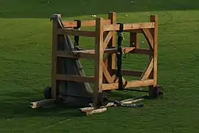 El apoyo de las flechas consistía en una viga de madera vertical fuerte y sólida con un agujero en la parte superior donde se insertaba la flecha. En la parte inferior de este viga de madera, se unía, sólidamente, un tablón de madera flexible con una cuerda atada a su extremo superior. El tablón se torcía hacia atrás con un torno o un cabestrante. Una vez tenía la tensión adecuada, se liberaba, golpeando la parte posterior de las flechas, lanzándolas con fuerza contra el objetivo. También había variantes con más de un agujero en la viga, por lo que se podían disparar varias flechas a la vez.