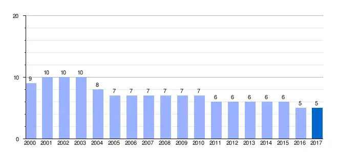 | Gráfica de evolución demográfica de Espino de los Doctores[4] entre 2000 y 2017 |