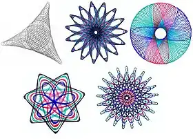 Un espirógrafo de 20cm, ya mencionado como juguete producido y vendido en la URSS en 1980, puede generar los siguientes dibujos.