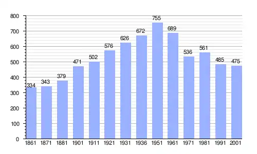 | Gráfica de evolución demográfica de Esporlatu entre 1861 y 2001 |