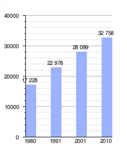 | Gráfica de evolución demográfica de Esquel entre 1980 y 2010 |