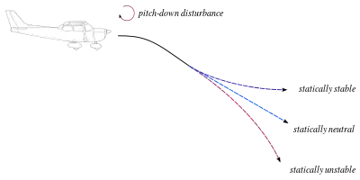 - Si este cambio causa otros cambios que tienden a alejar al vehículo de estas condiciones, se dice que es estáticamente inestable. La aeronave tiene una estabilidad negativa.