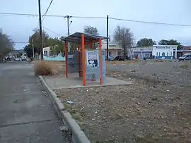 Se accede al plataforma mediante un cordón. La estación no incluye carteles informativos sobre el servicio y la combinaciones posibles. La parada está cubierta y cuenta con asientos de madera.