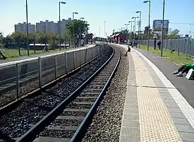 La estación opera dentro de la Línea Belgrano Sur, para el ramal que conecta la estación terminal provisoria Sáenz con González Catán. La Línea Belgrano Sur es una de las líneas suburbanas de Buenos Aires y forma parte a nivel nacional del Ferrocarril General Belgrano de la red ferroviaria argentina.[2]