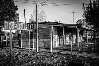Fue construida junto con la unión de la vía del FC Talcahuano - Chillán y Angol con el FC Santiago - Curicó, en 1874.[2] Luego pasó a formar parte de la Red Sur de Ferrocarriles del Estado. Se ubica en el kilómetro 328,2 de la línea Troncal Sur. Hasta 1913 tuvo el nombre de Membrillo, cambiando su nombre a Retiro mediante decreto del 14 de abril de dicho año.[3]