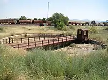 - Línea férrea de ancho ibérico Ciudad Real-Badajoz, punto kilométrico 331,7.[3]