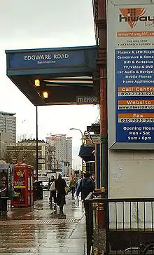 Edgware Road es una de las terminales de la línea District, y se encuentra entre las estaciones de la Calle Baker (Baker Street Station), y la de Paddington, para las líneas Hammersmith & City y Circle.