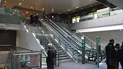 La estación está equipada con siete escaleras mecánicas y tres ascensores. Los andenes son accesibles para personas con movilidad reducida. Una gran vidriera permite iluminar una parte de la estación durante el día. Un sistema de bombas de calor se utiliza para aprovechar el calor constante del túnel (entre 10 °C y 14 °C) y convertirlo en aire acondicionado en verano y calefacción en invierno. Los muro pantalla que reposan en el subsuelo húmedo de la estación también son aprovechados para refrescar la misma y rebajar la temperatura ambiente.