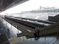 La estación dispone de 15 vías para los trenes convencionales (pertenecientes a la JR West) además de otras 4 vías dedicadas a los trenes Shinkansen (pertenecientes estos a la JR Central), que se encuentran apartadas de los andenes principales y en una situación elevada de varios pisos.