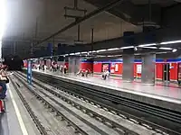 Esta estación tiene la peculiaridad de que los andenes de la línea 4 son más largos de lo normal en esta línea. Además, es la única decorada con paneles metálicos de color rojo intenso.