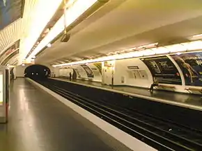 Está diseñada en bóveda elíptica revestida completamente de los clásicos azulejos blancos biselados del metro parisino. Su iluminación ha sido renovada empleando el modelo vagues (olas) con estructuras casi adheridas a la bóveda que sobrevuelan ambos andenes proyectando la luz en varias direcciones.