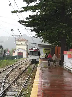 La estación forma parte de la línea C-7 Oviedo - Pravia - San Esteban de Cercanías Asturias. Cuenta, de lunes a viernes, con una frecuencia de un tren por hora a Oviedo, que en fines de semana se reduce a uno cada dos horas.[4]
