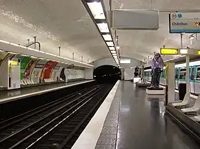 En su diseño, esta estación en bóveda es absolutamente clásica con un predominio absoluto de los habituales azulejos blancos biselados del metro parisino.