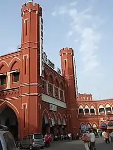 La estación de tren de Delhi fue construida en piedra roja para dar el efecto del cercano e histórico Fuerte Rojo. El edificio de la estación tenía seis torres de reloj y la torre 4 todavía está en uso como tanque de agua.