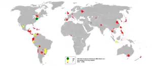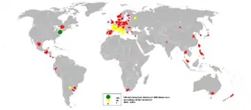 Además de en las bandas de onda media, la amplitud modulada (AM) también se utiliza en las bandas de onda corta y larga . La onda corta se utiliza principalmente para emisoras nacionales, propaganda internacional u organizaciones de radiodifusión religiosas . Las transmisiones de onda corta pueden tener un alcance internacional o intercontinental dependiendo de las condiciones atmosféricas.[20] La radiodifusión AM de onda larga se produce en Europa, Asia y África. La propagación de la onda terrestre en estas frecuencias se ve poco afectada por los cambios diarios en la ionosfera, por lo que las emisoras no necesitan reducir la potencia durante la noche para evitar interferencias con otros transmisores.