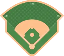 Jardín Izquierdo: 347 ft / 105 m Jardín Central: 385 ft / 117 m Jardín Derecho: 347 ft / 105 m | |