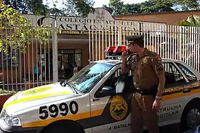 La Policía Militar del Paraná (PMPR) es fuerza auxiliar y reserva del Ejército Brasileño, y parte del Sistema de Seguridad Pública y Defensa Social del Brasil. Sus miembros son llamados de militares de los Estados.[11]
