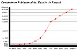 La población de Paraná es de 11.564.643 habitantes, según el último censo demográfico del año 2006, con datos pertenecientes al IBGE. Paraná es el sexto estado más poblado del Brasil y concentra el 5,63% de la población total del país. Del total de población del Estado, 5.826.038 habitantes son de sexo femenino y 5.738.605 habitantes pertenecen al sexo masculino.