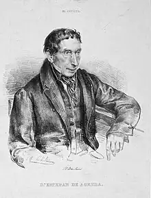 ![]() Retrato de Esteban de Ágreda, litografía de Carlos Luis de Ribera y Fieve para El Artista. Real Establecimiento Litográfico de Madrid, 1836. | ||