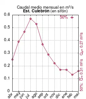 | Caudal medio | 0,38 - 0,61 m²/s | |