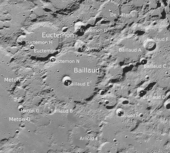 Por convención estos elementos son identificados en los mapas lunares poniendo la letra en el lado del punto medio del cráter que está más cerca de Euctemon.
